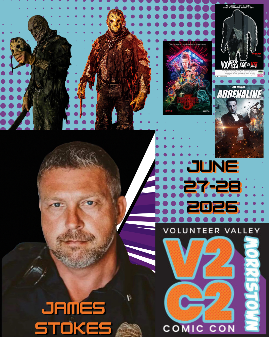 James Stokes began his acting career while taking drama class at Hopkinsville High School. He performed in Alice in Wonderland and Grease. He rediscovered his passion for acting in 2015 when he appeared in a short film The Switch. His credits now include The Silent Natural, the international action film Adrenaline, and TV shows such as Snapped, Mark of a Killer, and Stranger Things. Recently he has taken on the role of Jason Vorhees in Vorhees, Night of the Beast.